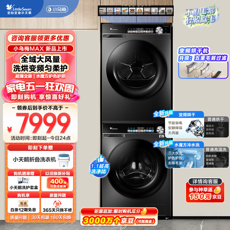 小天鹅(LittleSwan)洗烘套装10KG滚筒洗衣机+变频热泵烘干机 超薄全嵌【小乌梅MAX轻享版】TG100LVIC+81MAX价格:8499.00元!