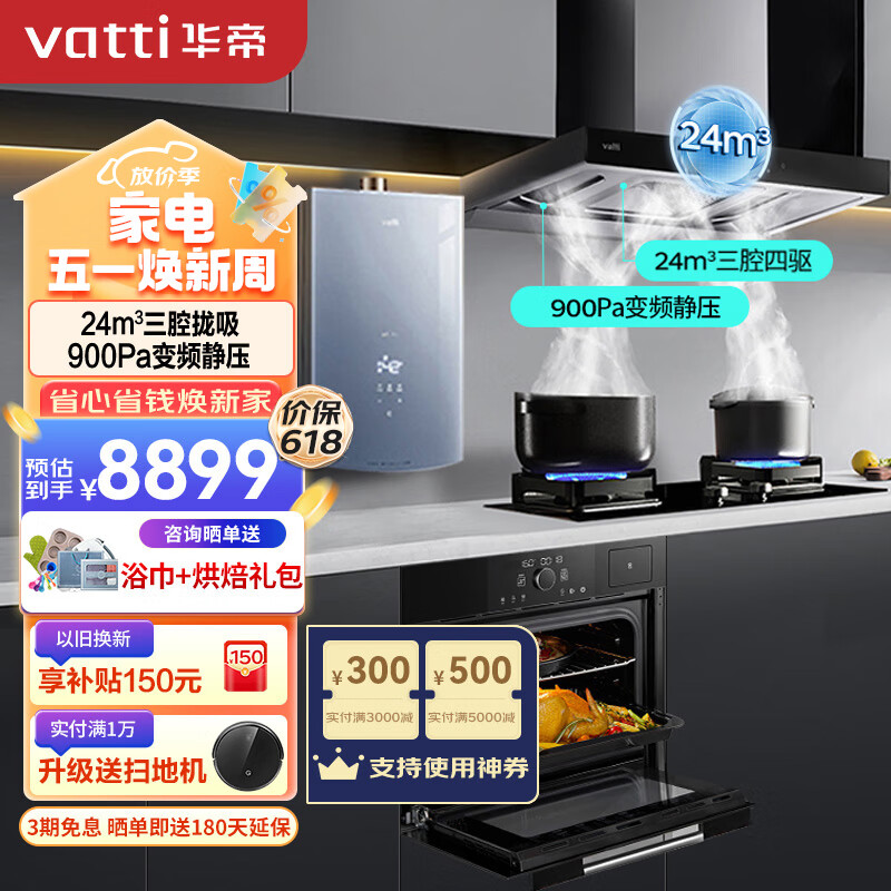 华帝(VATTI)抽油烟机灶具热水器蒸烤箱家用厨房多件套 i11206+72B+70-16+23011(天然气)价格:8899.00元!
