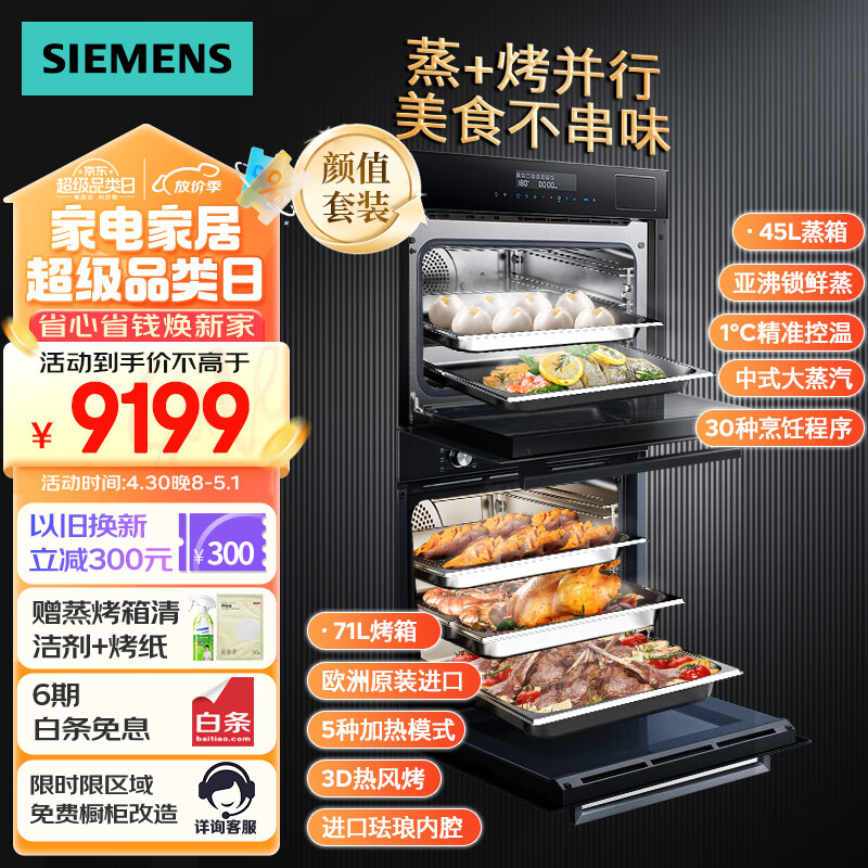 西门子(SIEMENS)蒸烤箱套装 欧洲原装进口烤箱+国产嵌入式蒸箱 自清洁CD289+HB313 烤59.5CM蒸45.5CM高价格:9199.00元!