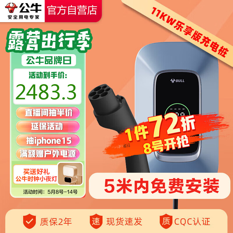 公牛(BULL)新能源汽车交流充电桩动态屏显适配于小米su7汽车特斯拉等 11KW乐享款 送基础安装价格:3449.00元!