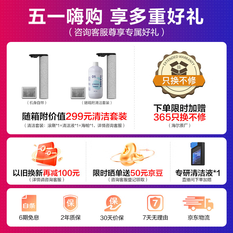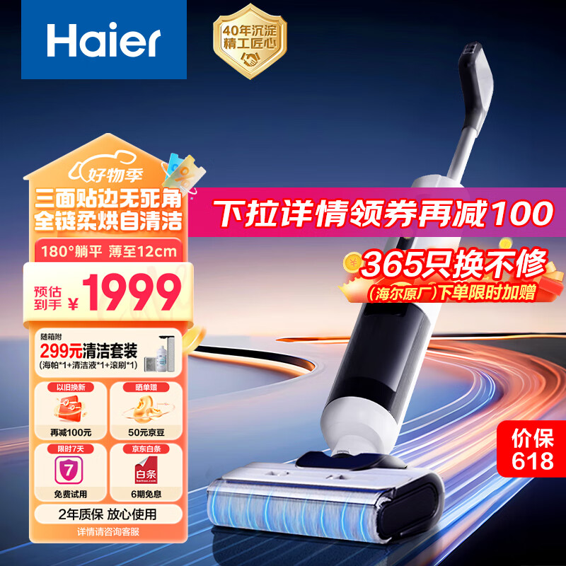 海尔无线智能洗地机吸洗拖一体自动清洗全自动拖地机扫地机器人吸尘器家用3贴边超薄平躺小海豚G700价格:2399.00元!