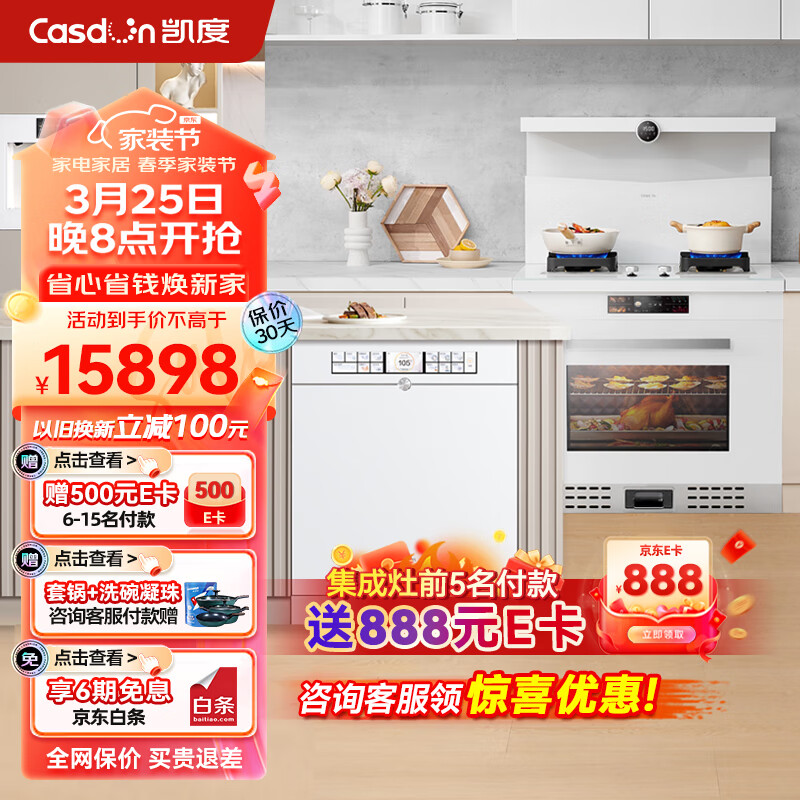 凯度(CASDON)蒸烤一体天然气白色款 JJZT-B2S8-T2E+18套彩屏双变频洗碗机机KD4DCQR-18Z5白色价格:16898.00元!