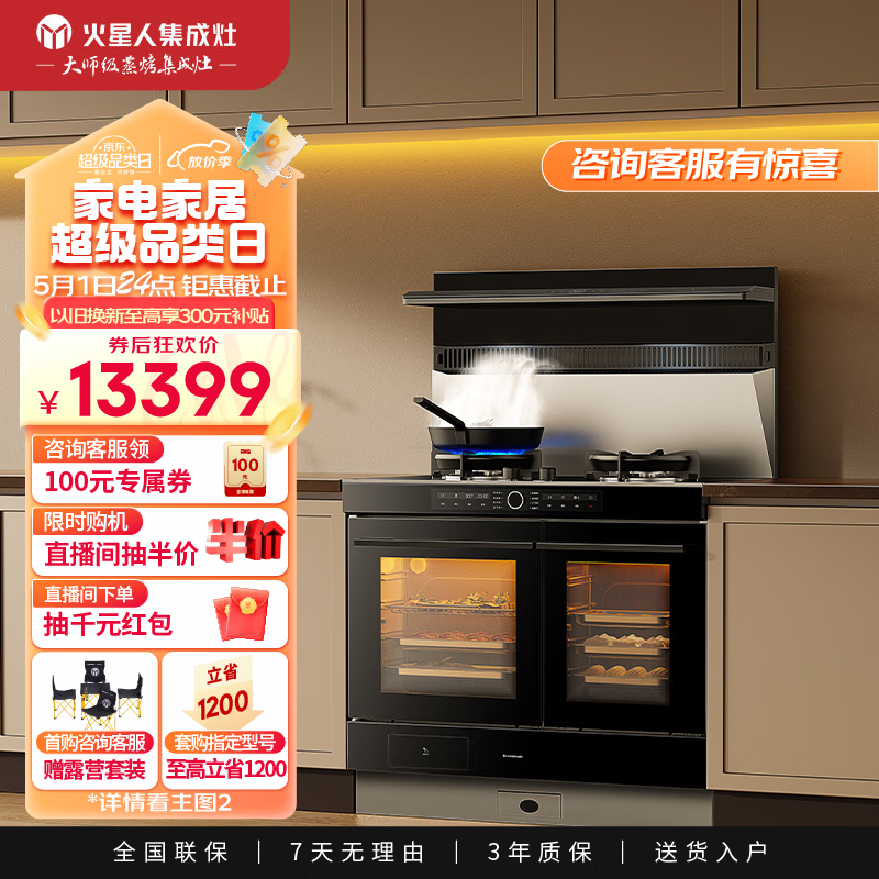 火星人集成灶ET50BCZ 集成灶蒸烤一体 左蒸烤炸右快蒸 家用蒸箱烤箱 燃气灶天然气价格:13699.00元!