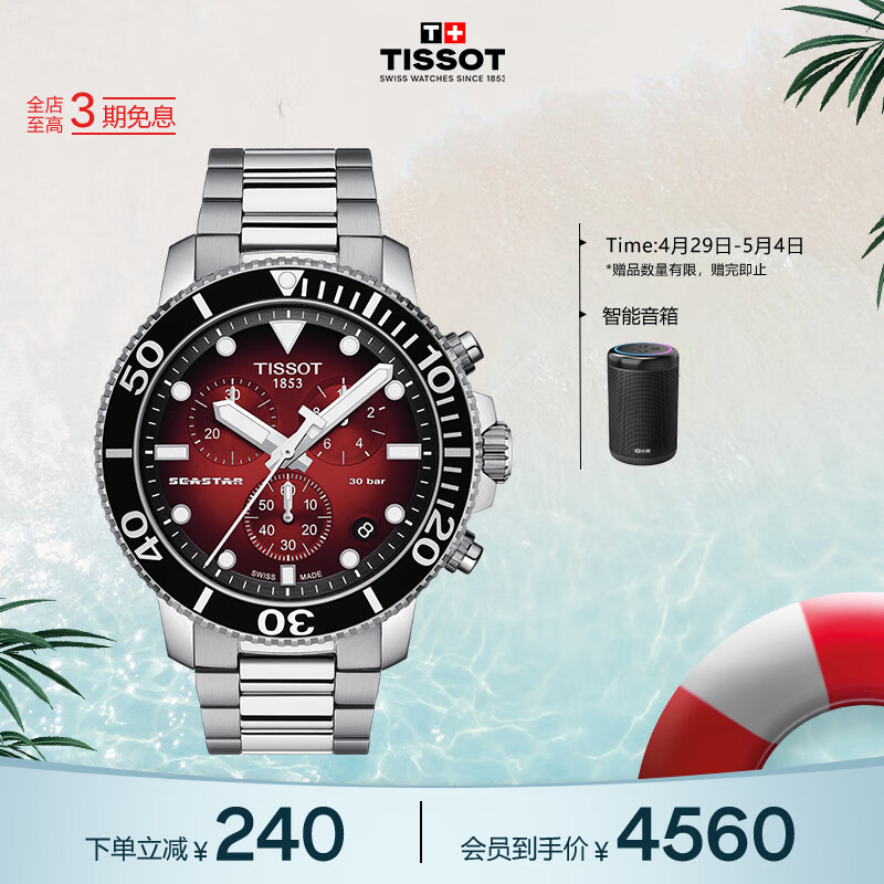 天梭(TISSOT)瑞士手表 海星系列腕表 钢带石英男表 T120.417.11.421.00价格:4800.00元!