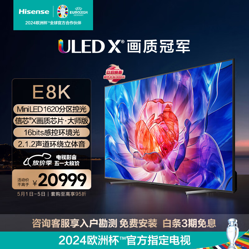 海信电视100E8K 100英寸 ULED X 百吋超画质MiniLED 1620分区 液晶智能平板电视机 以旧换新 98英寸+价格:20999.00元!