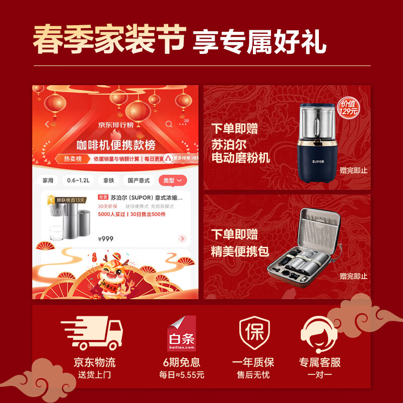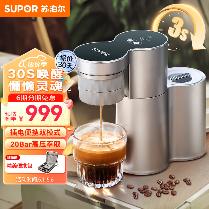 苏泊尔(SUPOR)意式浓缩家用半自动咖啡机 礼物送长辈 办公室小型露营便携摩卡手冲壶 全自动美式花式 SW-CFP201价格:999.00元!