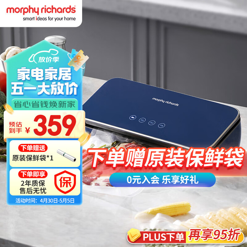 摩飞电器(Morphyrichards)真空封口机保鲜机 家用抽真空包装密封机 干湿两用塑封机 真空外抽独立封口 抽真空封口机MR1118价格:339.00元!