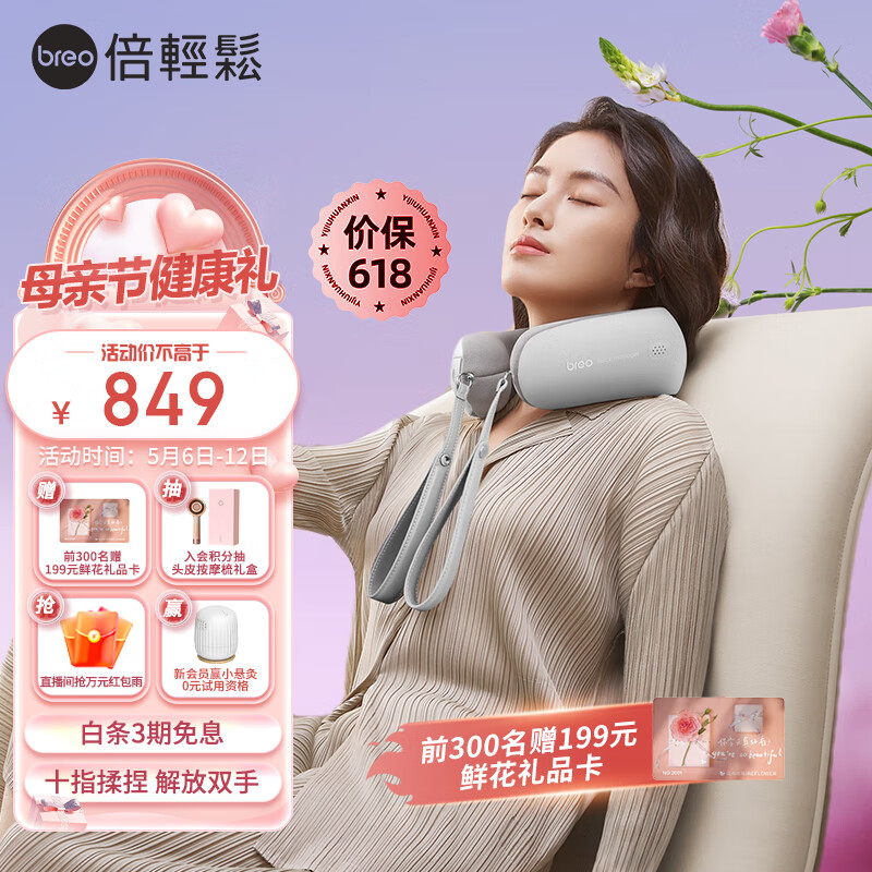 倍轻松(breo)颈椎按摩器Neck5 颈肩部按摩器肩颈按摩仪按摩枕物理十指揉捏恒温热敷 父母男女友生日母亲节礼物价格:1039.00元!