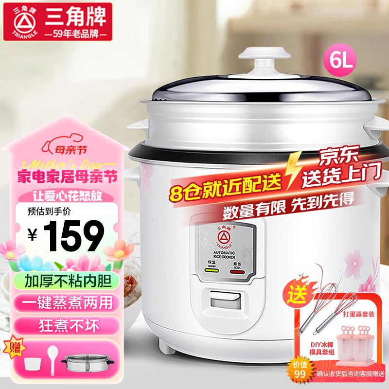 三角牌(Triangle)电饭煲 家用电饭煲老式电饭锅大容量带蒸笼柴火饭米饭锅小煮饭锅 6升(适合5-8人)价格:169.00元!