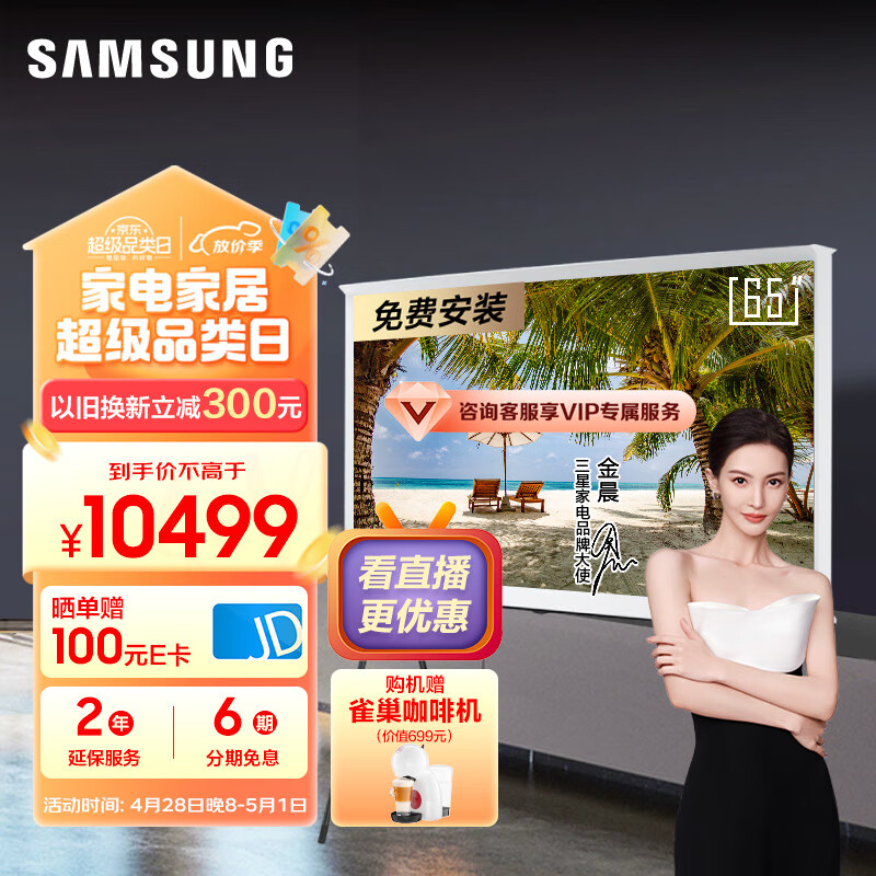 三星(SAMSUNG)65LS01C 65英寸 Serif画境艺术电视 超薄4K哑光屏显120Hz QLED量子点 HDMI2.1 QA65LS01CAJXXZ价格:9399.00元!