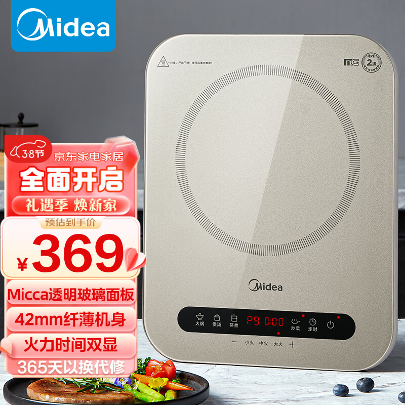美的(Midea)电磁炉 家用2200W大功率 恒匀火加热 电磁灶火锅炉爆炒定时电磁炉套装 C22-Micca708价格:369.00元!