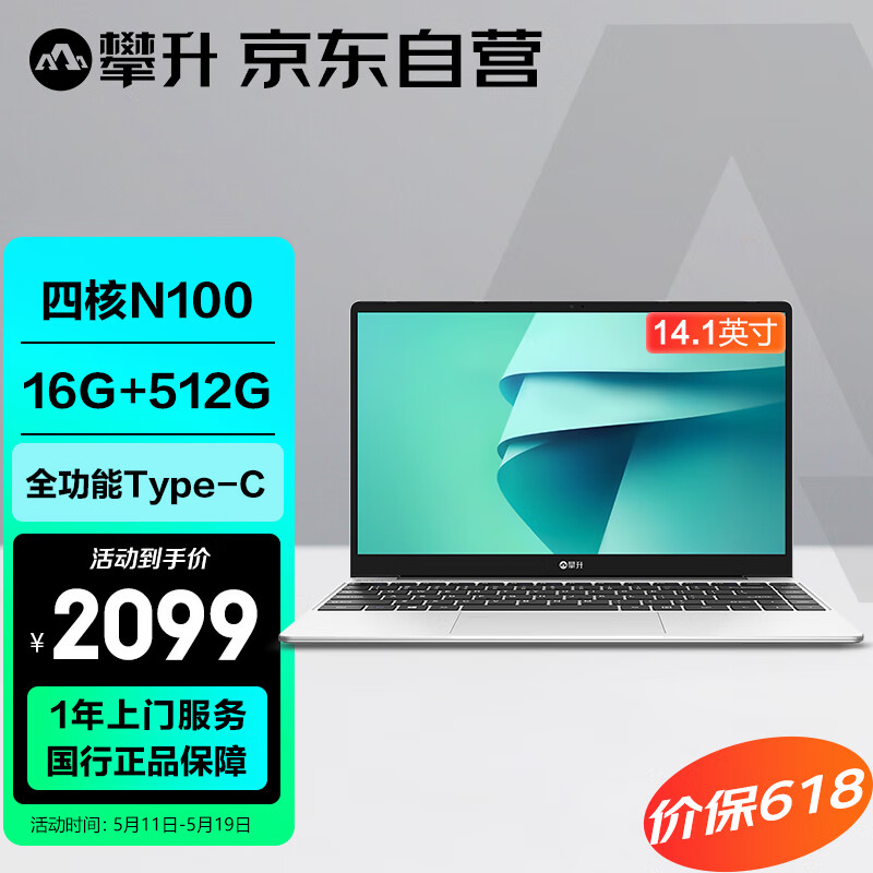 攀升暴风龙P3先锋版14.1英寸商务办公2024大学生网课设计学习轻薄便携笔记本电脑 四核N100 16G 512G价格:2099.00元!