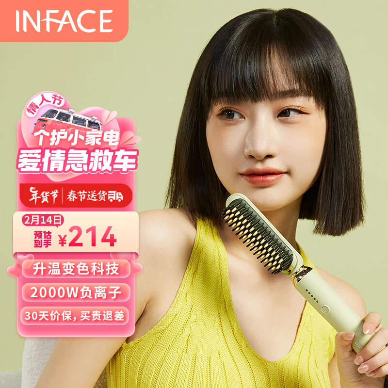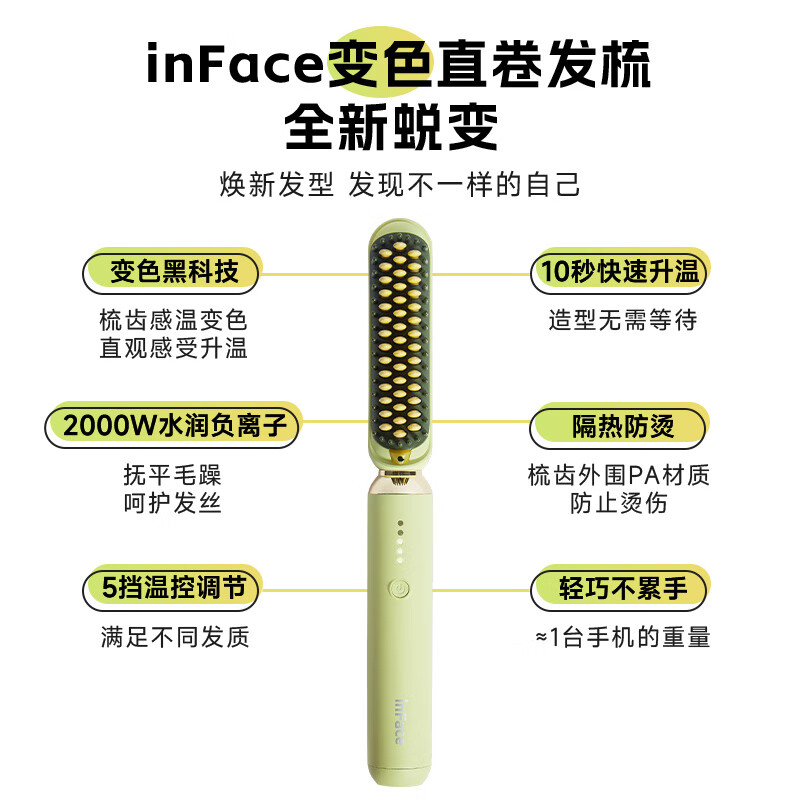 inFace负离子直发梳卷发棒直板夹蓬松夹板棒卷发梳电梳子短发打理卷直两用干湿生日礼物女送老婆送女友价格:289.00元!