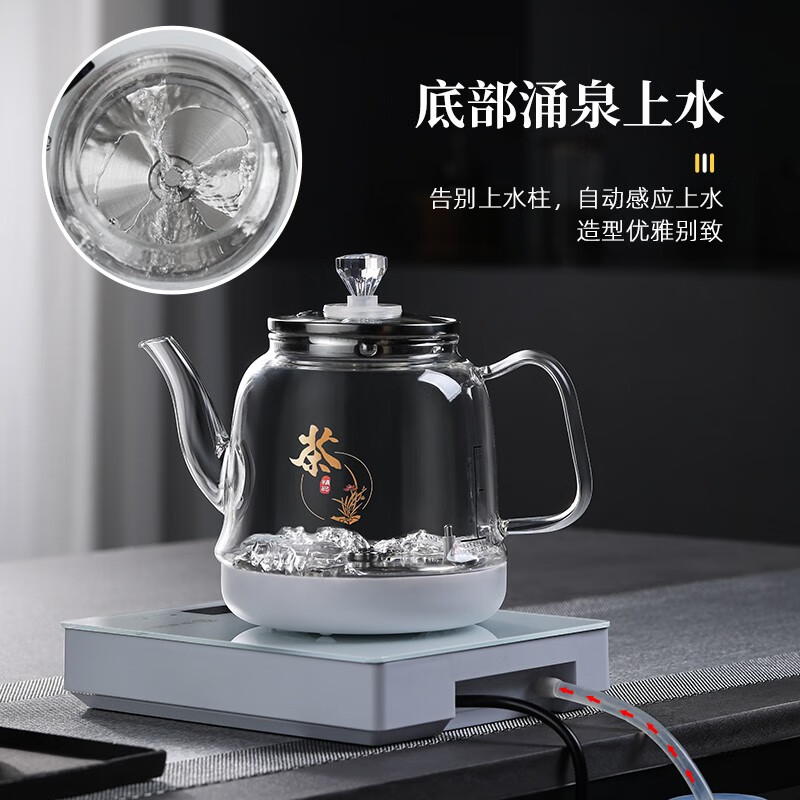 FUNORK全自动上水电热烧水壶玻璃烧水器茶台专用一体茶桌茶几保温泡茶具抽水电茶炉 底部上水 - 黑色价格:169.00元!