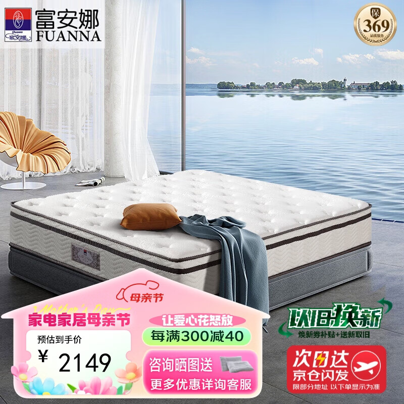 富安娜床垫 软硬适中天丝面料乳胶床垫独立袋装弹簧床垫 1.8*2米 静享价格:2469.00元!