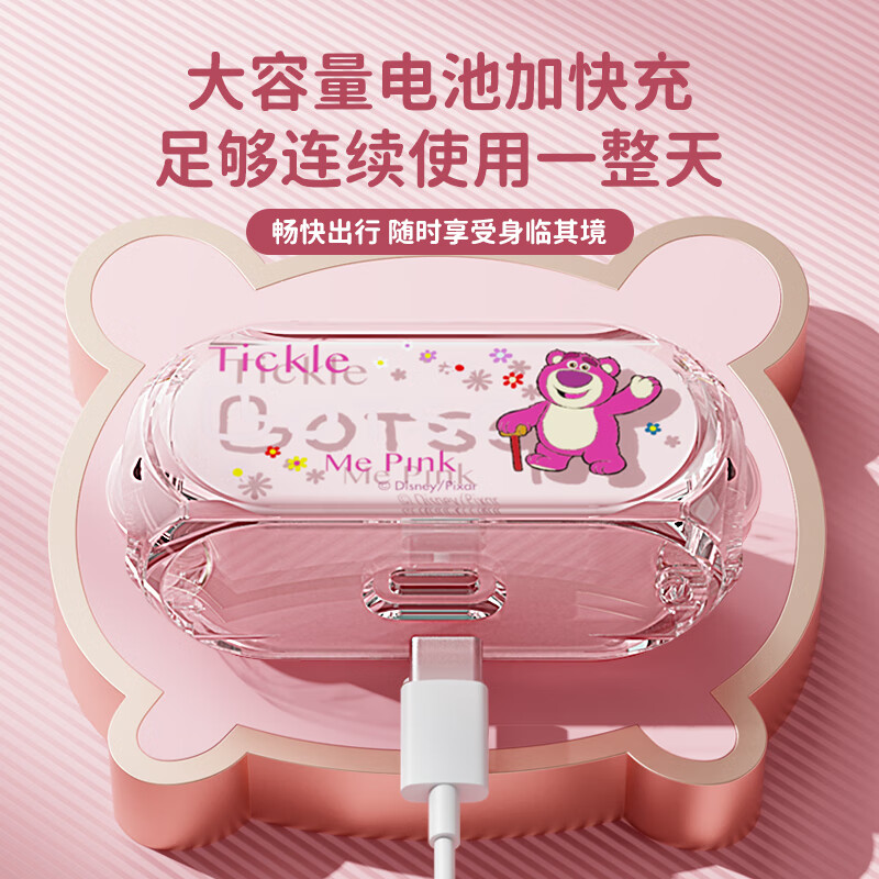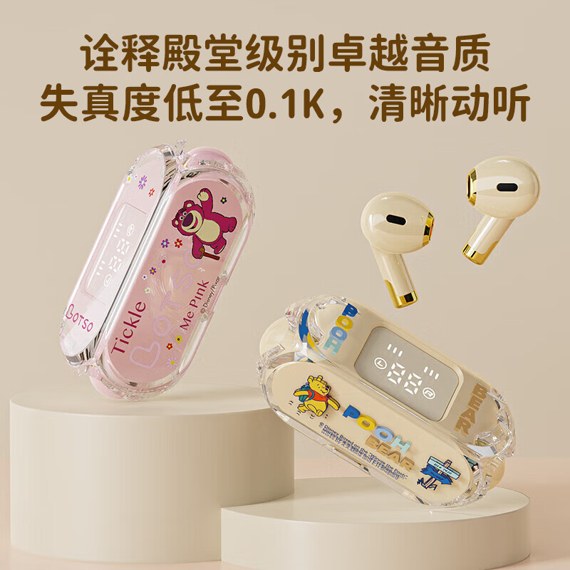 迪士尼(DISNEY)J13蓝牙耳机透明真无线半入耳式运动跑步LED数显音乐降噪游戏情侣礼物适用华为苹果【粉色草莓熊】价格:94.00元!