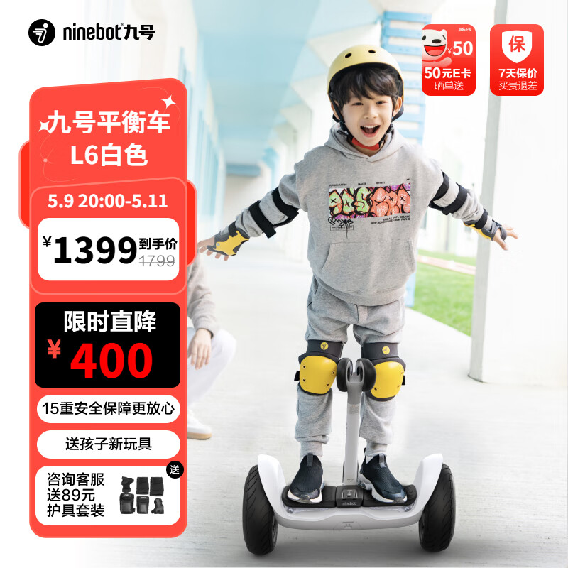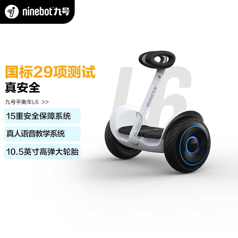 Ninebot九号平衡车L6白色 儿童生日礼物平衡车6-12岁智能双轮腿控9号电动平衡车7-10岁大价格:1499.00元!