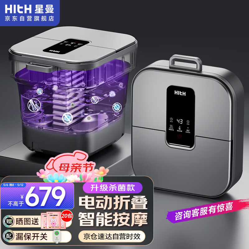 HITH杀菌泡脚桶按摩足浴盆 电动折叠升降洗脚桶 智能恒温加热按摩足疗泡脚盆 母亲节礼物送妈妈 YMZ-D6价格:899.00元!