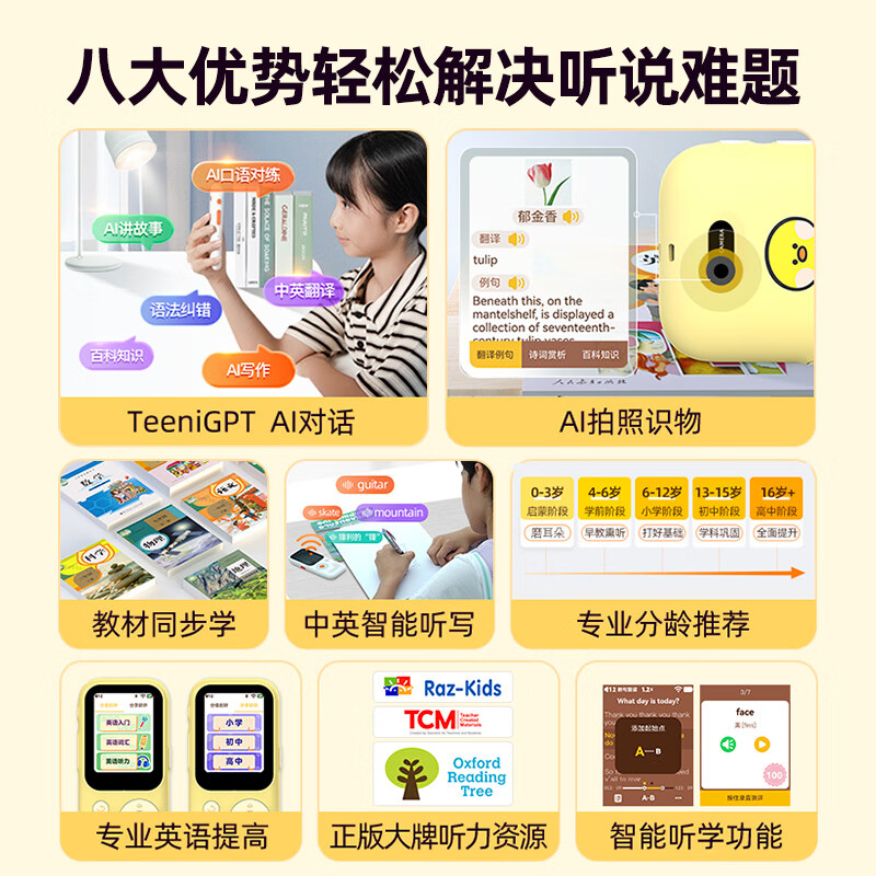 听力熊复读机T6英语听力学习机神器小学初中高中学生专用随身听力宝口袋mp3好学多LineFriends128G莎莉尼价格:798.00元!
