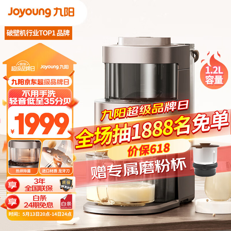 九阳免手洗破壁机 低噪音不用手洗高端多功能预约热烘除菌榨汁机轻音 豆浆机 Y1升级版价格:1999.00元!