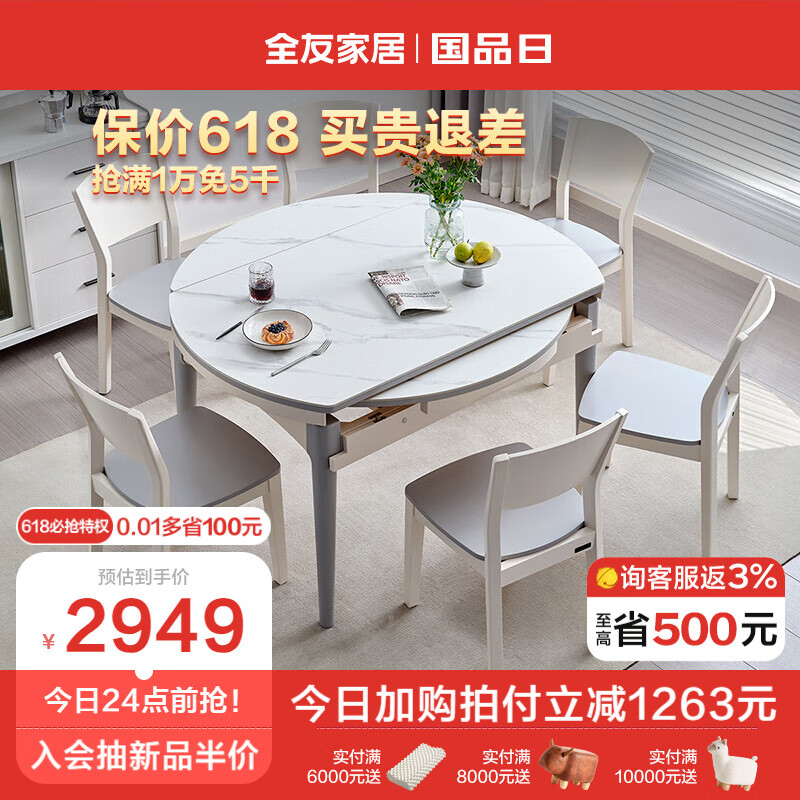 全友家居 餐桌椅 现代简约餐桌椅 可伸缩折叠岩板餐桌DW1028K价格:4212.86元!