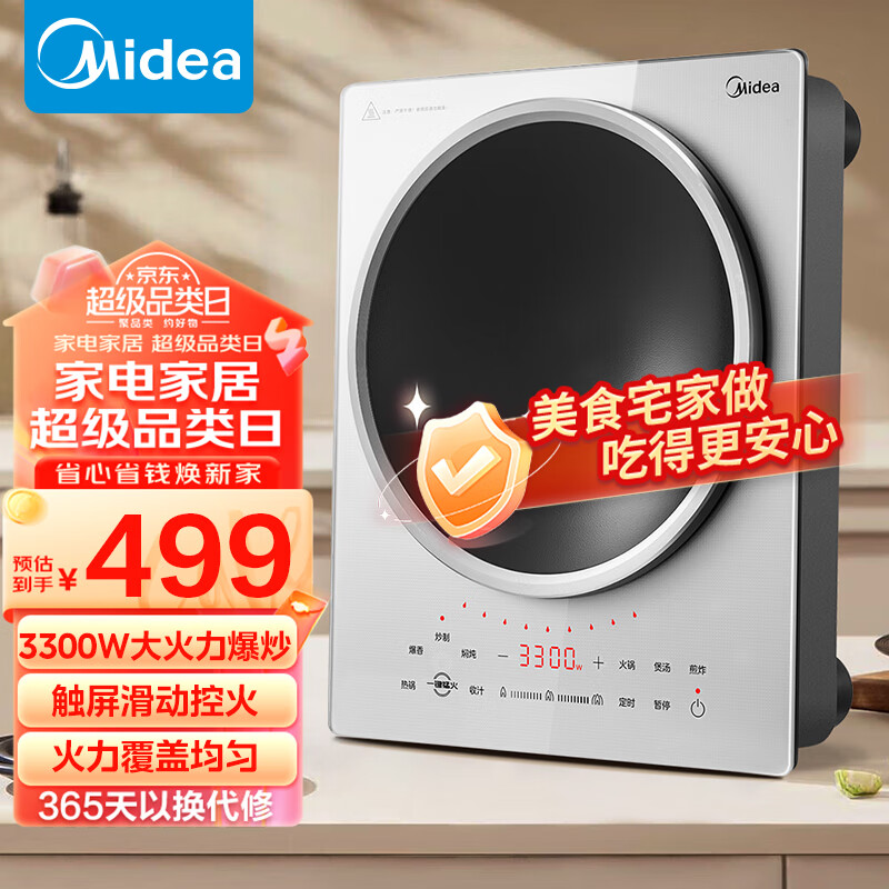 美的电磁炉 家用大功率 小型多功能炒菜锅凹面电磁炉3300W商用电磁灶 MC-E33CA11价格:499.00元!