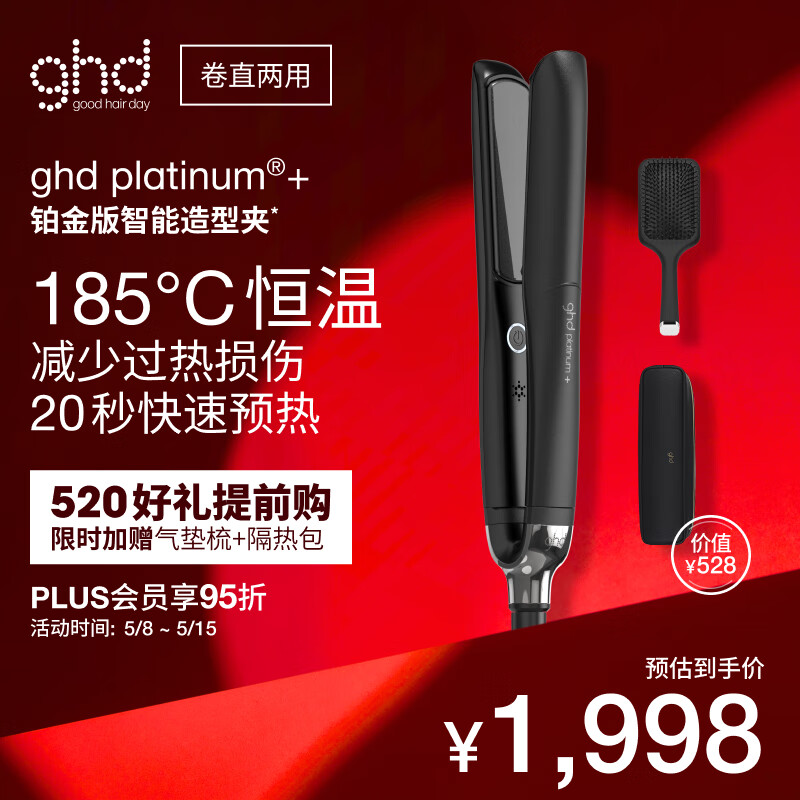 ghd铂金夹板直板夹185℃恒温卷直两用男女卷发棒刘海烫发夹减少热损伤卷发器经典黑生日礼物送女友价格:1998.00元!