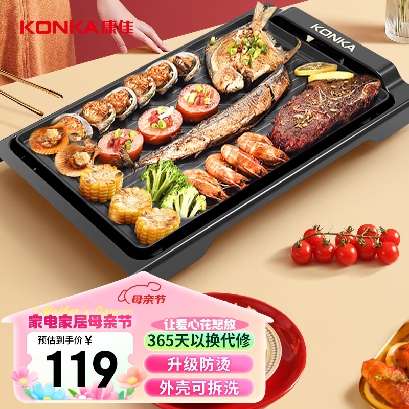 康佳(KONKA)家用无烟电烧烤炉 不粘电烤炉电烤盘烤肉炉烤肉锅韩式电烤炉铁板烧烤盘烤肉机 KEG-W180A价格:119.00元!