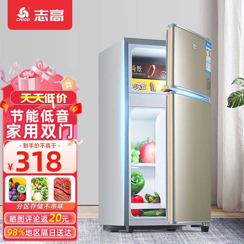 志高(CHIGO)小冰箱 双门宿舍租房小户型家用 冷藏冷冻双开门 迷你电冰箱节能保鲜小冰箱BCD-58A118D金色价格:348.00元!
