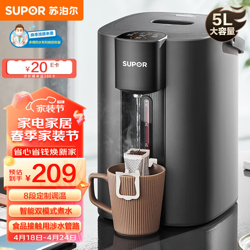 苏泊尔(SUPOR) 电热水瓶热水壶 5L大容量电水瓶八段智能保温恒温304不锈钢 家用电水壶烧水壶 SW-50T507价格:209.00元!