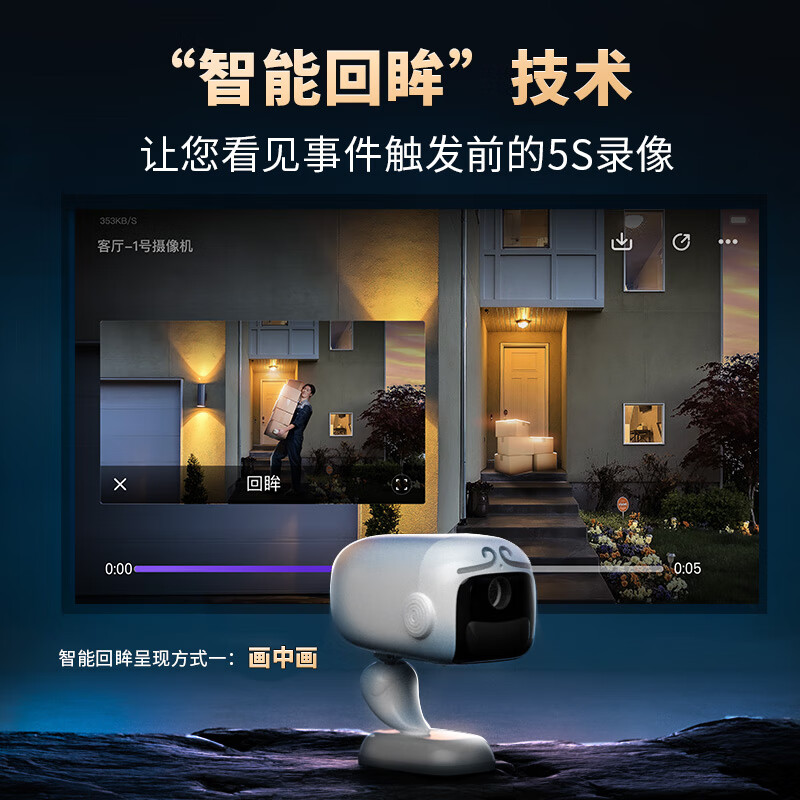 神眸悟空摄像头 门口楼道免插电 400万2.5K高清 电池充电监控器无线wifi家用室内夜视手机远程价格:469.00元!