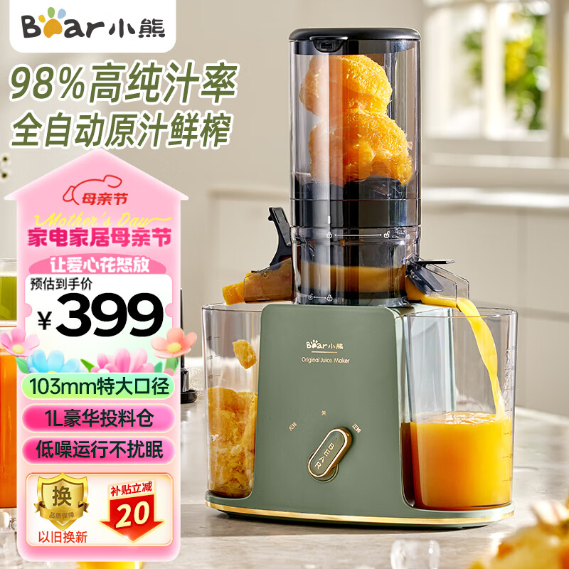 小熊(Bear)原汁机 家用小型榨汁机汁渣分离 全自动多功能冷压炸果蔬机 超大口径果汁机 YZJ-D01Y6价格:399.00元!