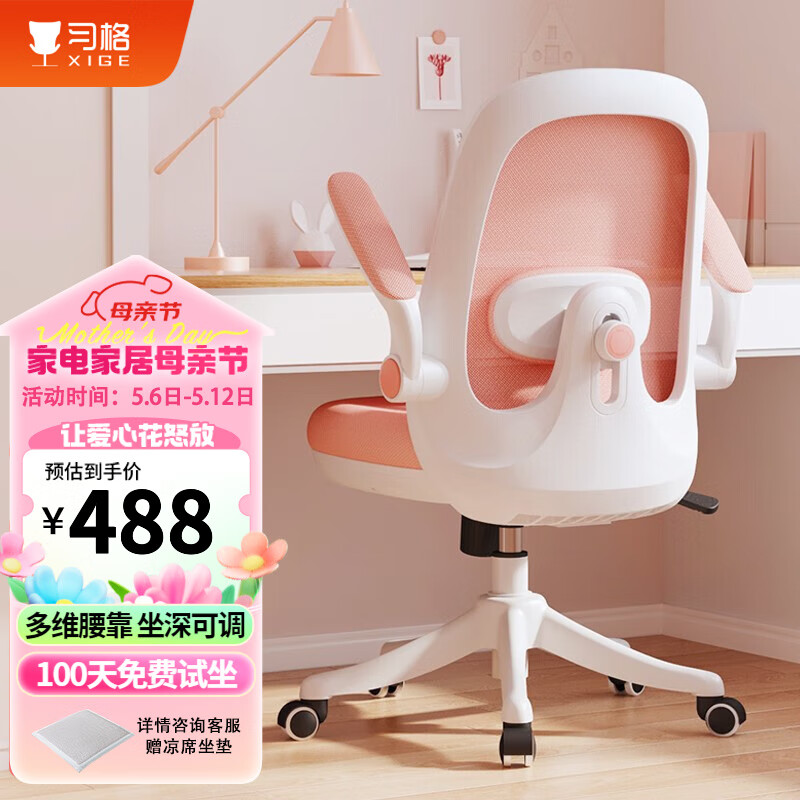 习格家用电脑椅学生学习写字书房座椅办公椅转椅职员会议椅舒适久坐 9012高配版糖果粉价格:559.00元!