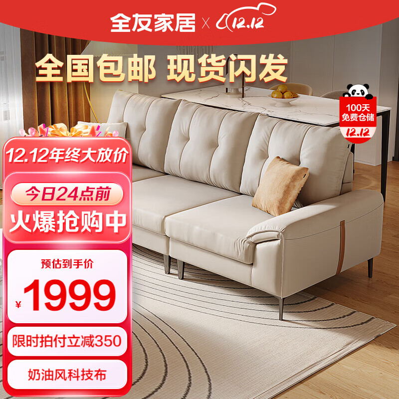全友家居 沙发奶油风科技布沙发客厅中小户型大象耳朵直排座具111037B价格:2349.00元!