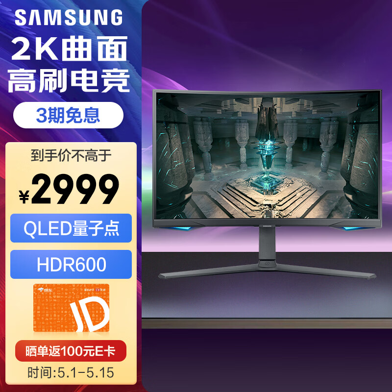 三星(SAMSUNG)32英寸 240Hz 2K 1000R曲面 HDR600 HDMI2.1 玄龙骑士 电竞显示器 S32BG654与S32BG650随机发货价格:3799.00元!