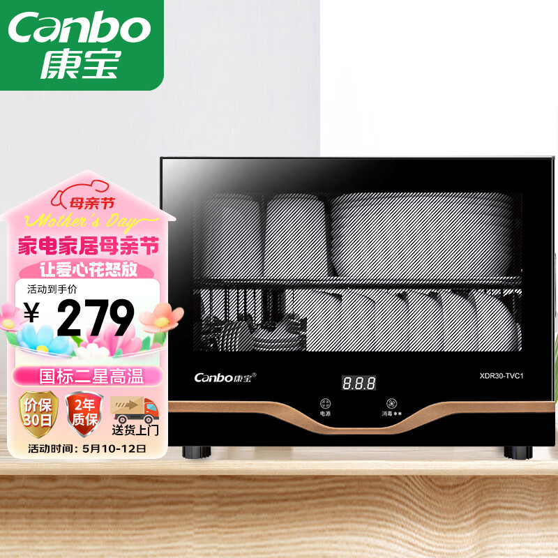 康宝(Canbo)消毒柜 家用 小型 立式高温消毒碗柜 小型 迷你桌面碗筷收纳柜餐具茶杯二台式桌面 XDR30-TVC1价格:519.00元!