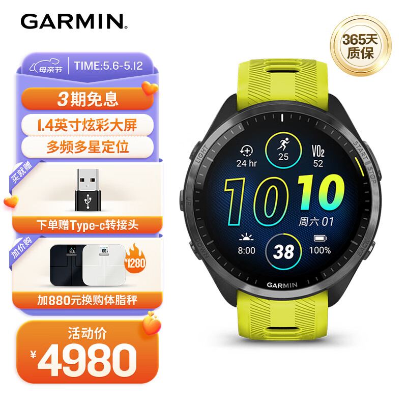 佳明(GARMIN)Forerunner965户外智能运动手表血氧铁三跑步骑行游泳极光黄价格:4980.00元!