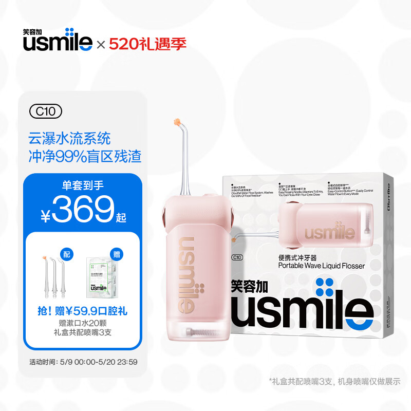 usmile笑容加 冲牙器洗牙器水牙线 伸缩便携冲牙器 C10蔷薇粉价格:399.00元!