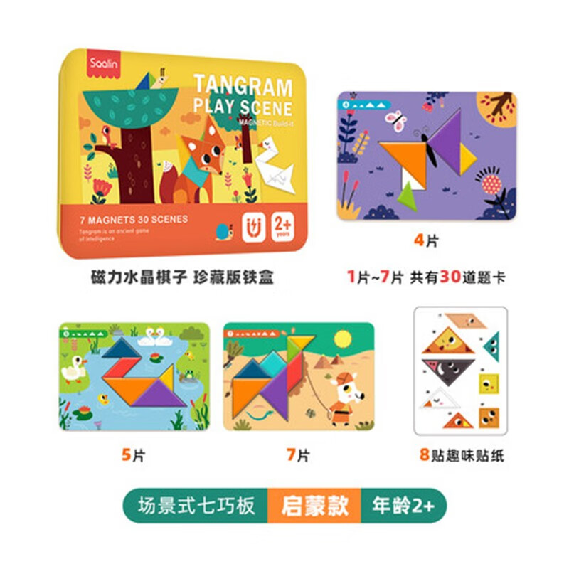 莎林SAALIN磁性七巧板智力拼图儿童几何认知玩具幼儿园小学一年级教具价格:59.90元!