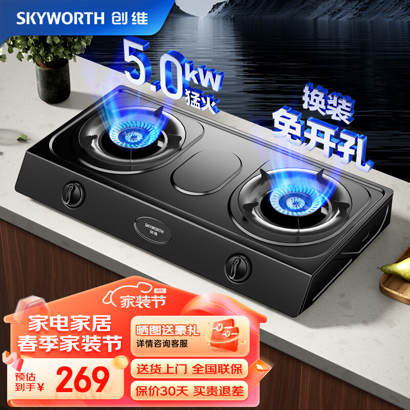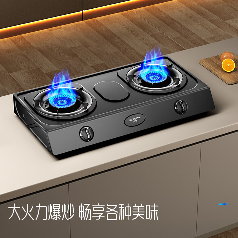 创维(Skyworth)燃气灶双灶具 5.0KW大火力家用猛火台式灶 天然气双灶炉具灶台Z201T(天然气)价格:269.00元!