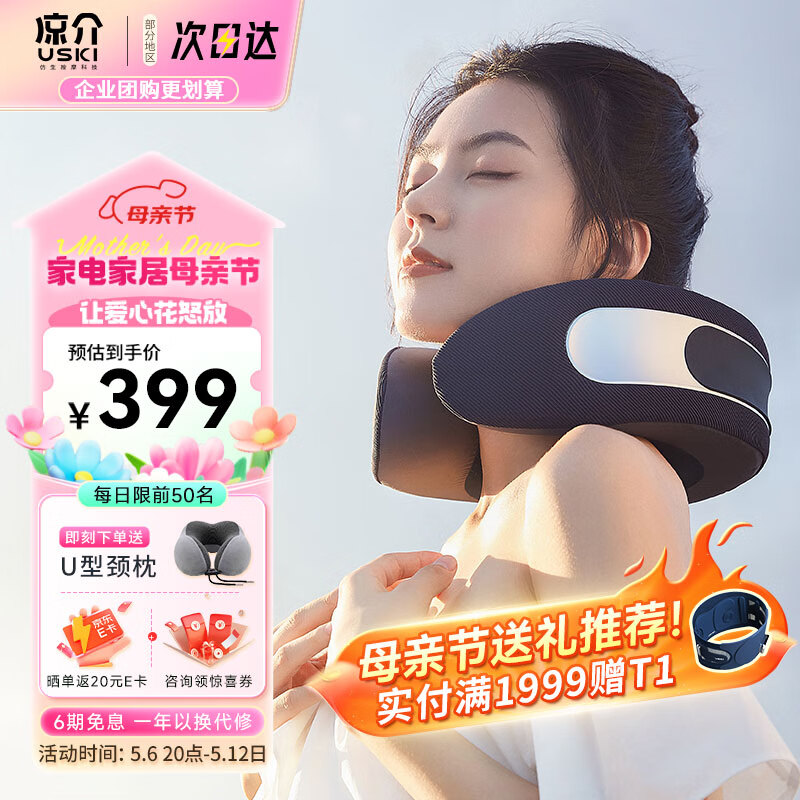 凉介USKI 颈椎按摩器 MT02蓝色 肩颈按摩器 颈部按摩仪仿生揉捏颈部加热 生日礼物女 实用送长辈价格:429.00元!