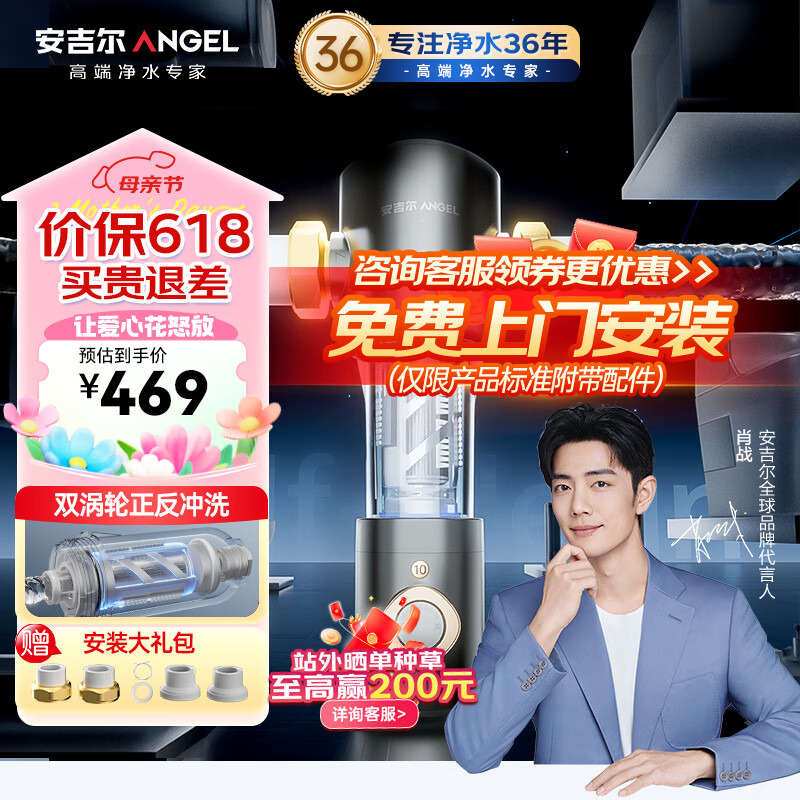 安吉尔【肖战代言】7T前置过滤器40μm内外双毛刷半自动反冲洗全屋家用自来水净水器J3526-GWG-6000价格:469.00元!
