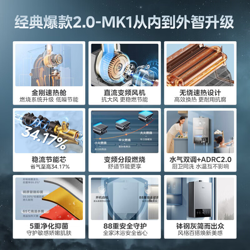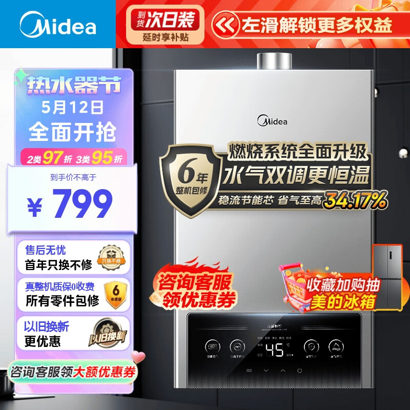美的(Midea)13升燃气热水器 水气双调 天然气?ECO节能 四季恒温洗 无极变升 多重安防LED大屏JSQ25-MK1耀影价格:749.00元!