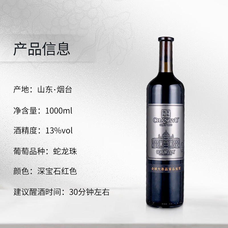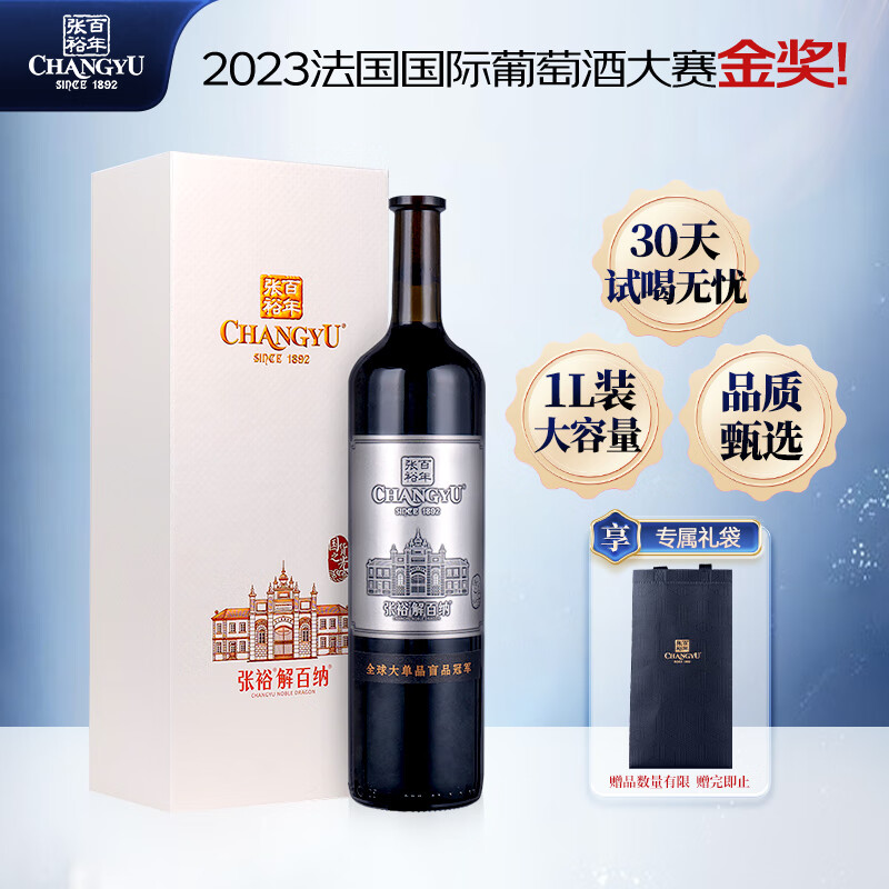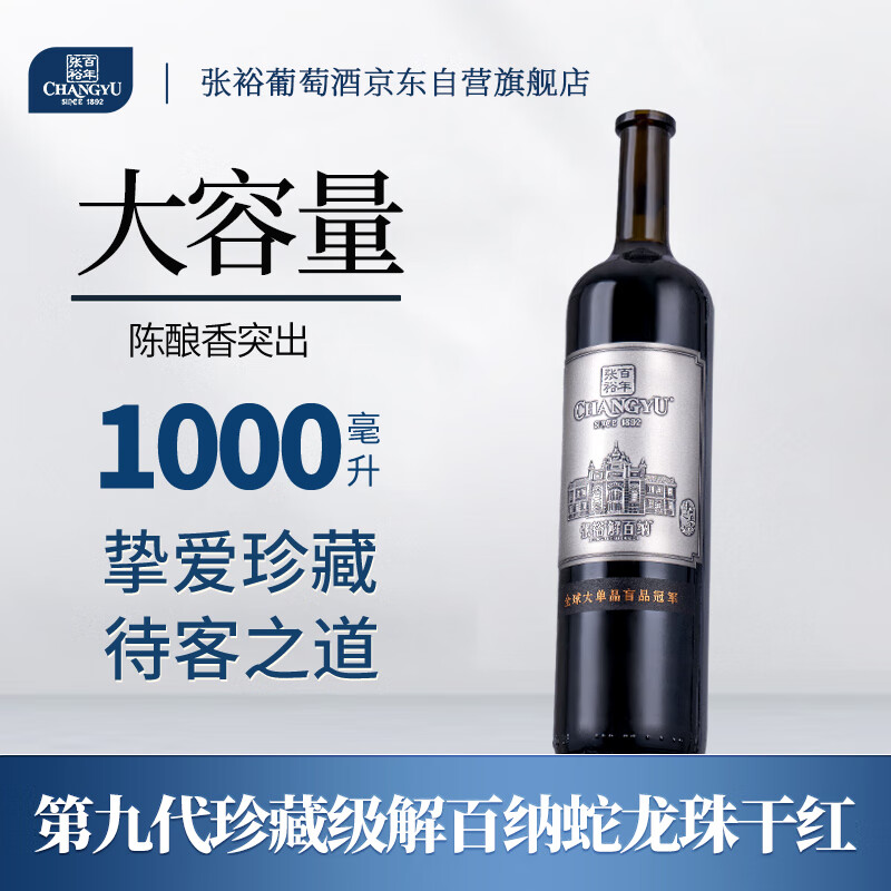 张裕(CHANGYU)第九代珍藏级解百纳蛇龙珠干红葡萄酒1L大酒纪念版单瓶红酒送礼价格:321.00元!