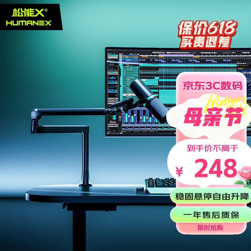 松能X麦克风话筒支架桌面悬臂支架台式主播直播K歌录音2KG承重防震三段式可拆解万向折叠 AX-3价格:304.00元!