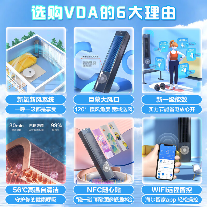 Leader空调海尔出品大3匹新风立式空调 一级能效变频冷暖大风量家用客厅柜机空调以旧换新VDA81[家电]价格:6999.00元!