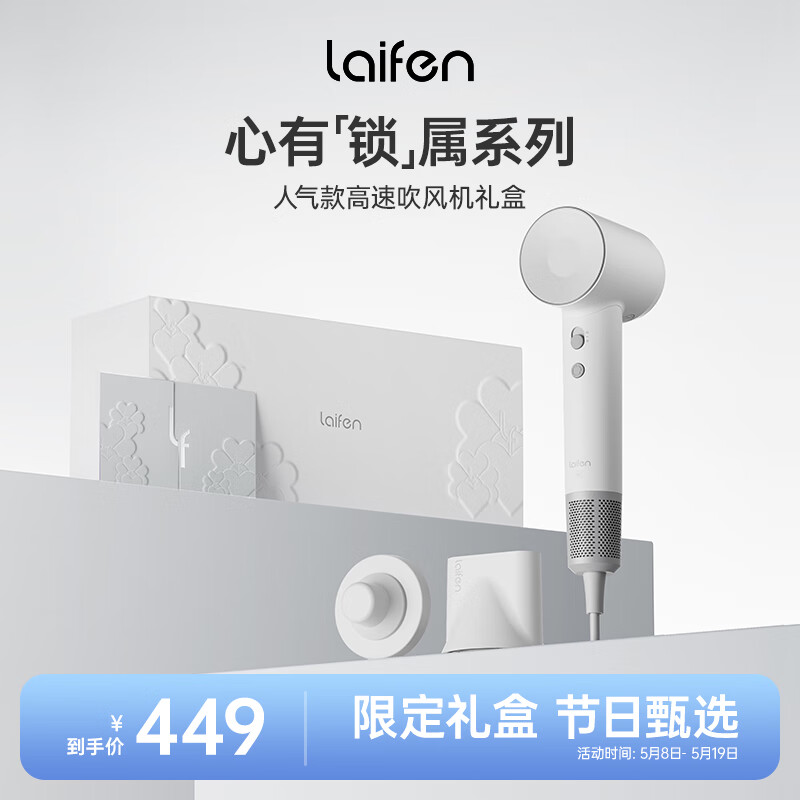 徕芬Laifen 情人节心有锁属高速吹风机礼盒 莱芬家用吹风机 大风力不伤发低噪音电吹风 赠母亲节礼物 白色价格:600.00元!