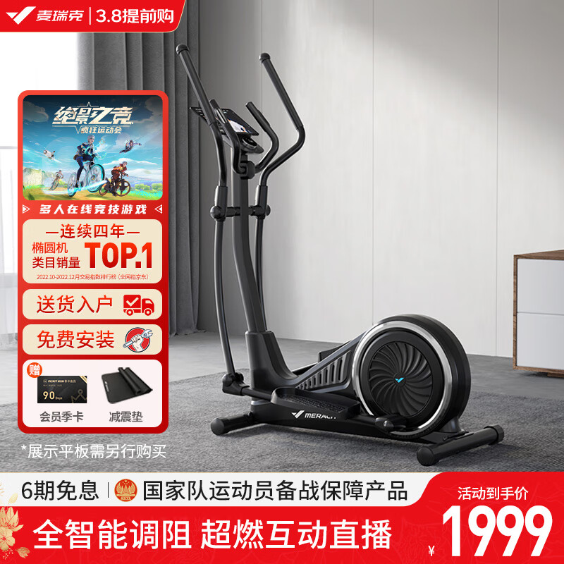 麦瑞克(MERACH)椭圆机家用智能太空漫步椭圆仪踏步机健身运动器材 蜗牛X飞梭版价格:1999.00元!
