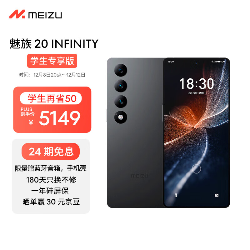 Meizu魅族 20 INFINITY 无界版 12GB+512GB 星辰黑【学生专享版】第二代骁龙8 2K+臻彩屏 5G游戏学生拍照手机价格:7299.00元!