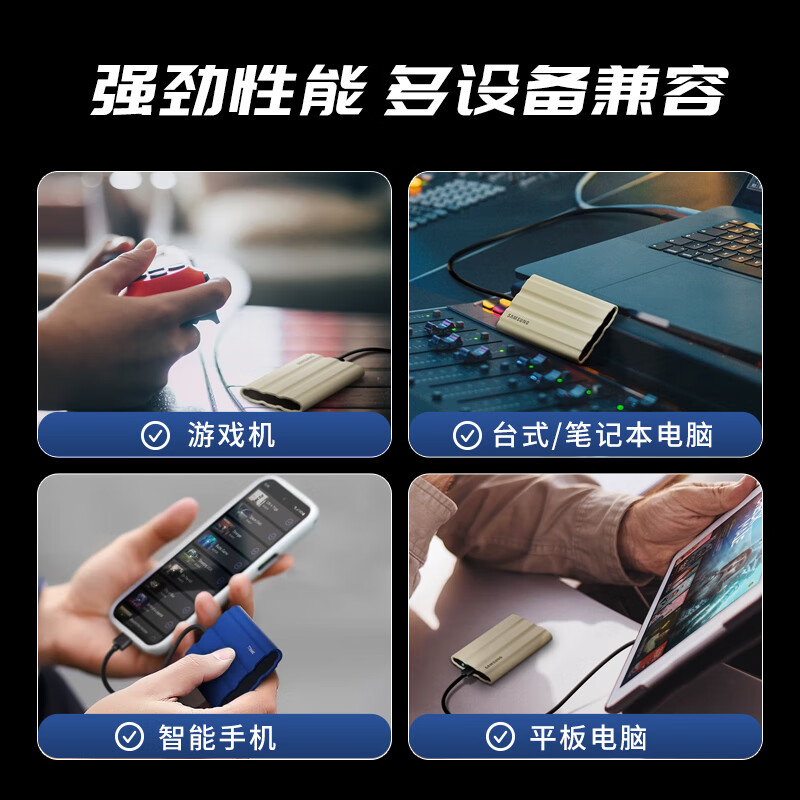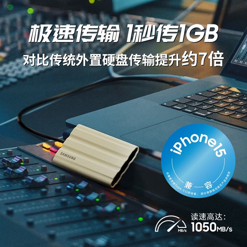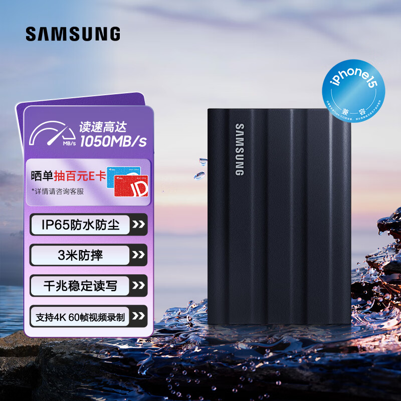三星(SAMSUNG)1TB Type-c接口 移动固态硬盘(PSSD)T7 Shield 暗夜黑 NVMe传输速度1050MB/s IP65三防保护价格:969.00元!